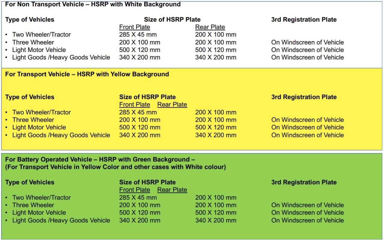 Specifications for Vehicles